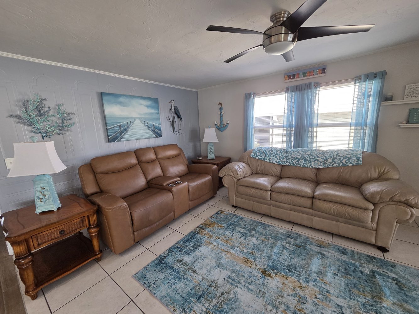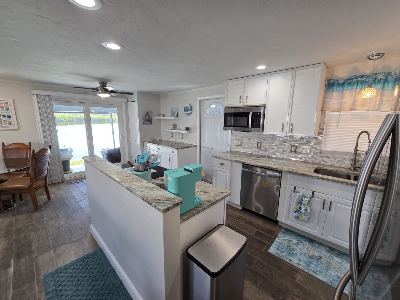Leather living room furniture, All stainless steel appliances, Master bed has a new King