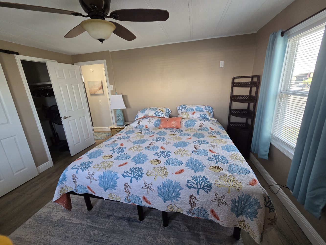 adjustable bed. Both bathrooms have newly updated showers, the master bath includes